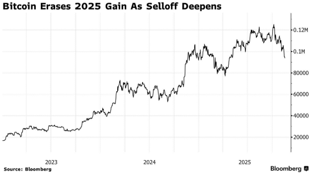 在10月份突破12.6万美元后,比特币大幅下跌,一度抹平了2025年的全部涨幅,直至周一亚洲早盘才趋于稳定。在原本被认为将巩固比特币合法性的这一年,其价格却从历史高点大幅回落。
